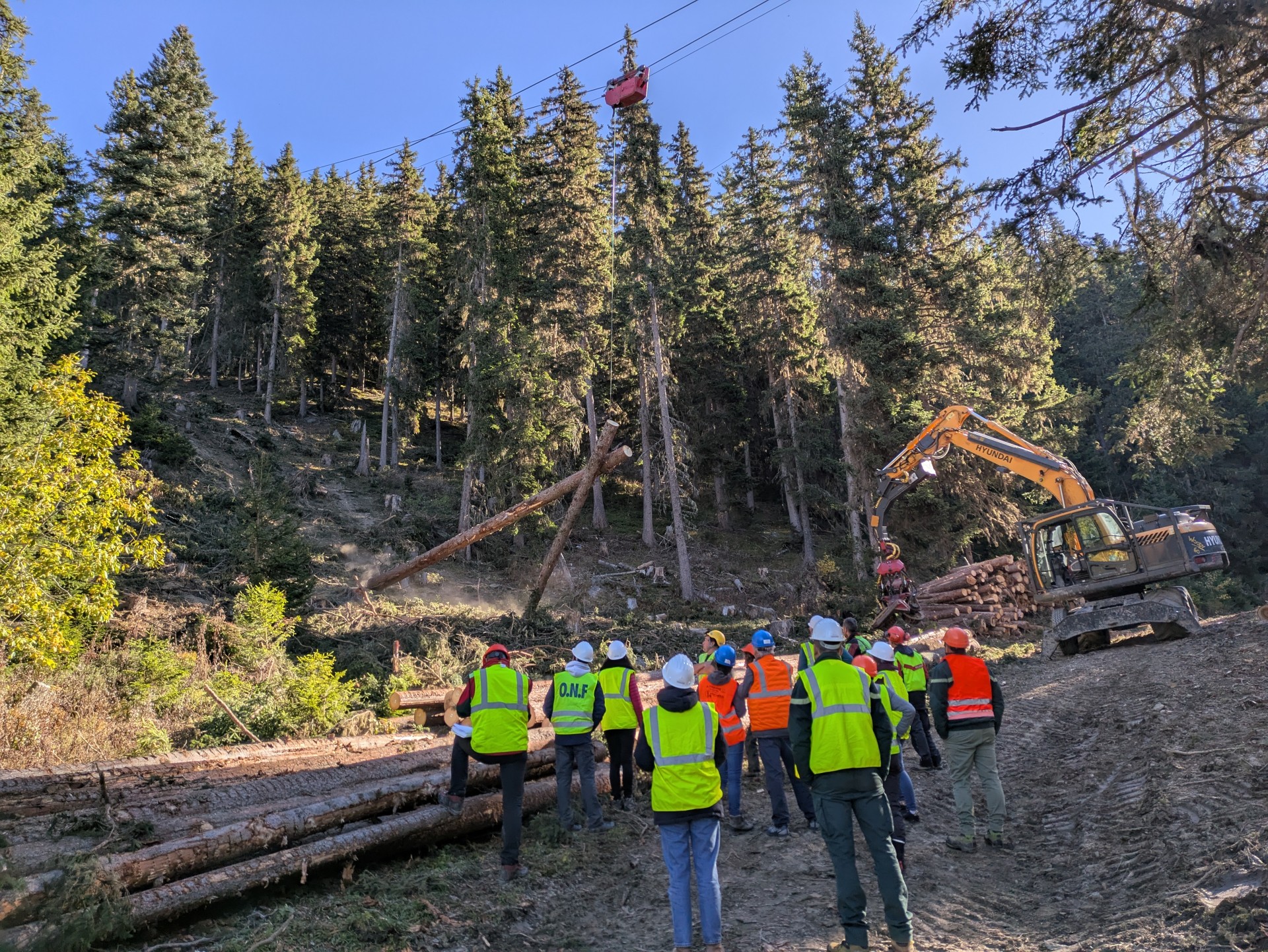 Débardage par câble : une journée technique au cœur des forêts alpines