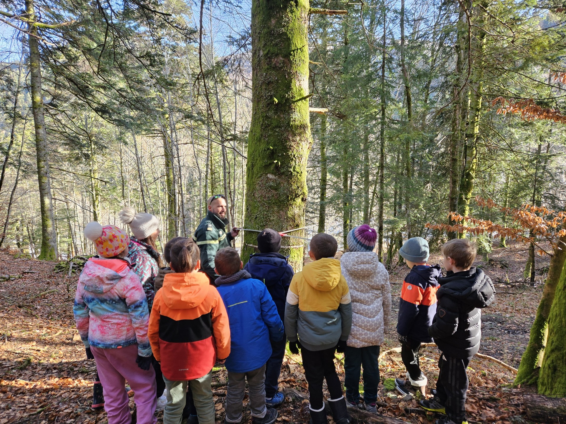 Les enfants de l’école de Laveissière sont retournés en forêt lundi 01 décembre, accompagné de leur enseignante, du technicien forestier territorial de l’ONF et du chargé de mission des Communes forestières Cantal. Ils ont pu, lors de cet après-midi en forêt, apprendre à utiliser les outils du forestier pour mesurer les arbres remarquables de la parcelle. Ainsi, ils ont pu noter leur diamètre, grâce au compas forestier, leur circonférence grâce à un mètre à ruban et leur hauteur grâce à la croix du bûcheron et à leur pas. Un peu de géométrie et de calcul en extérieur pour cette dernière visite de la parcelle cette année. Rendez-vous l’année prochaine pour suivre les activités de nos petits forestiers en herbe.